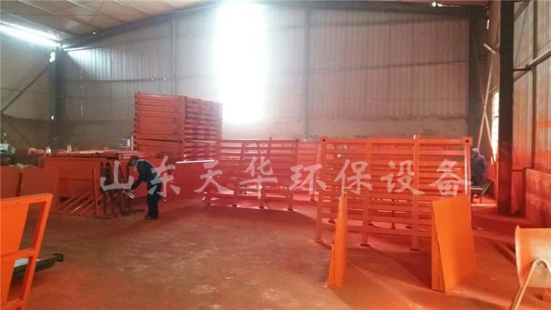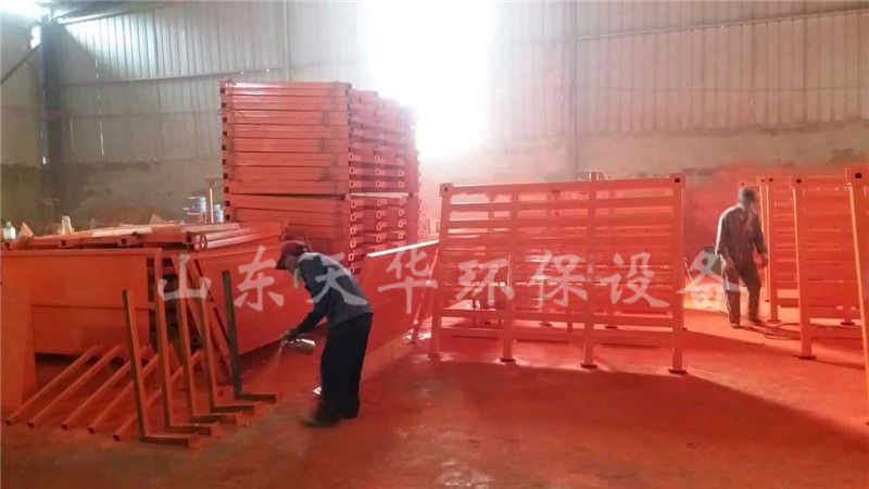 因近期全國轉入開工旺季,工地洗車機的需求激增,山東天華調整工作班次,增加了產量。上圖為我廠工人加班給交付中建集團的一批設備防腐噴漆。